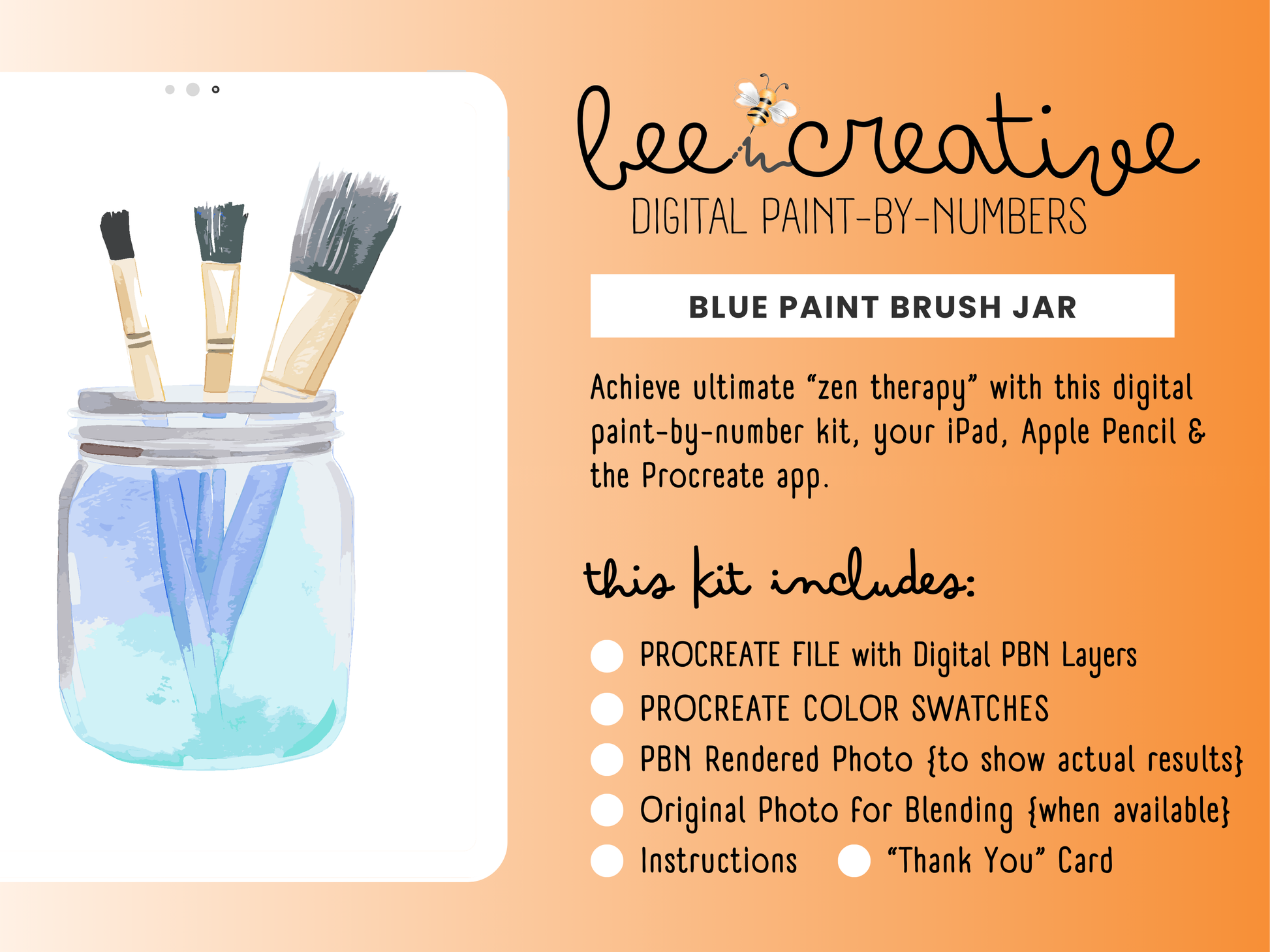 Kit de pintura digital por números BEE CREATIVE {para Procreate} - Tarro de pincel azul