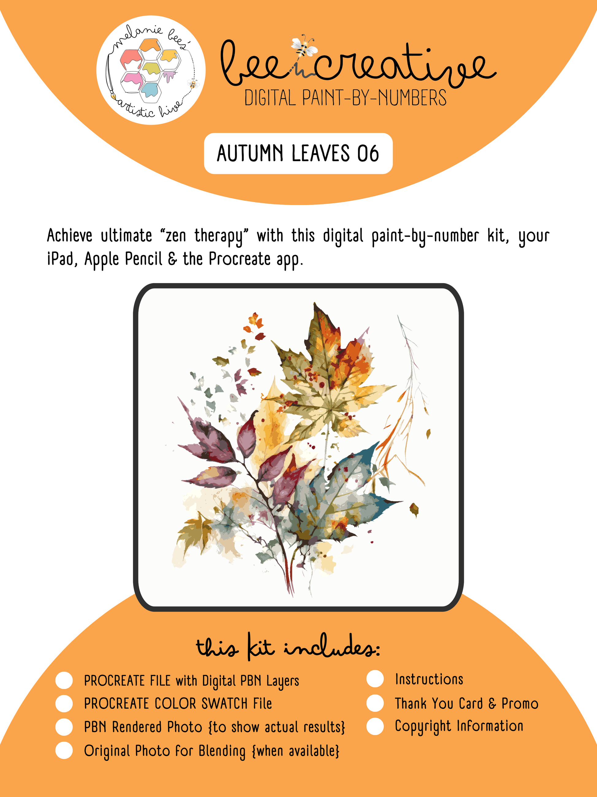 Kit de pintura por números imprimible "ABEJA ARTÍSTICA" - HOJAS DE OTOÑO 06
