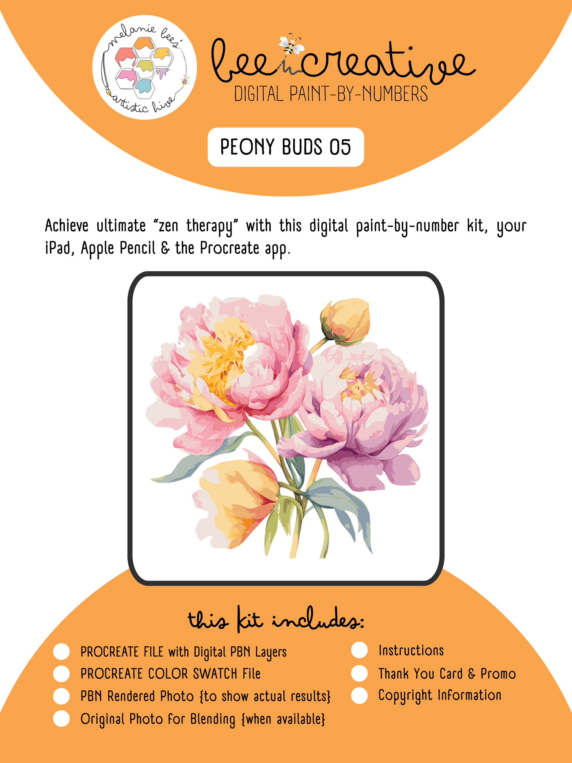 BEE CREATIVE Digital Paint by Number Kit {for Procreate} - PEONY BUD 05