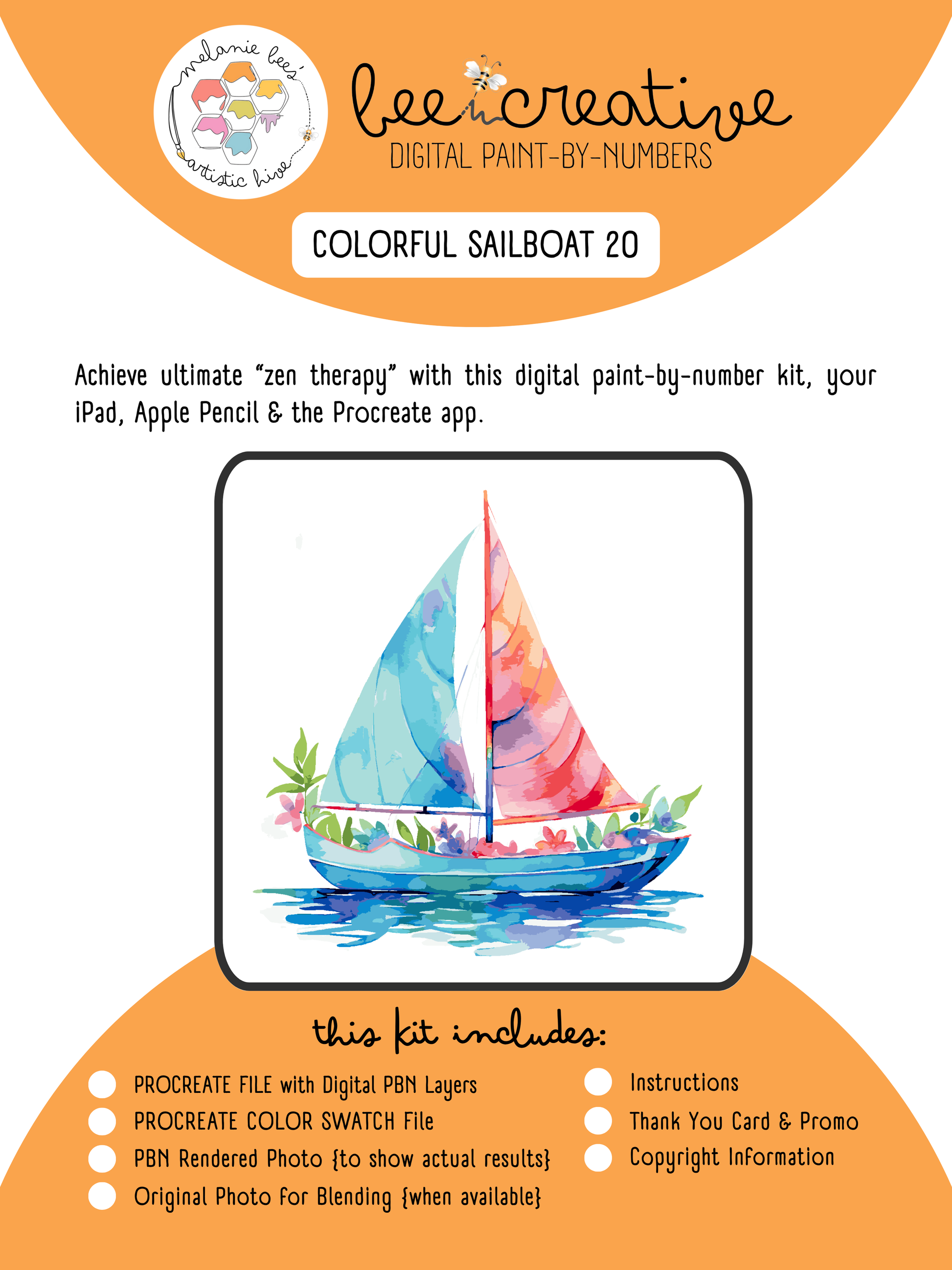 BEE CREATIVE Digital Paint by Number Kit {for Procreate} - COLORFUL SAILBOAT 20