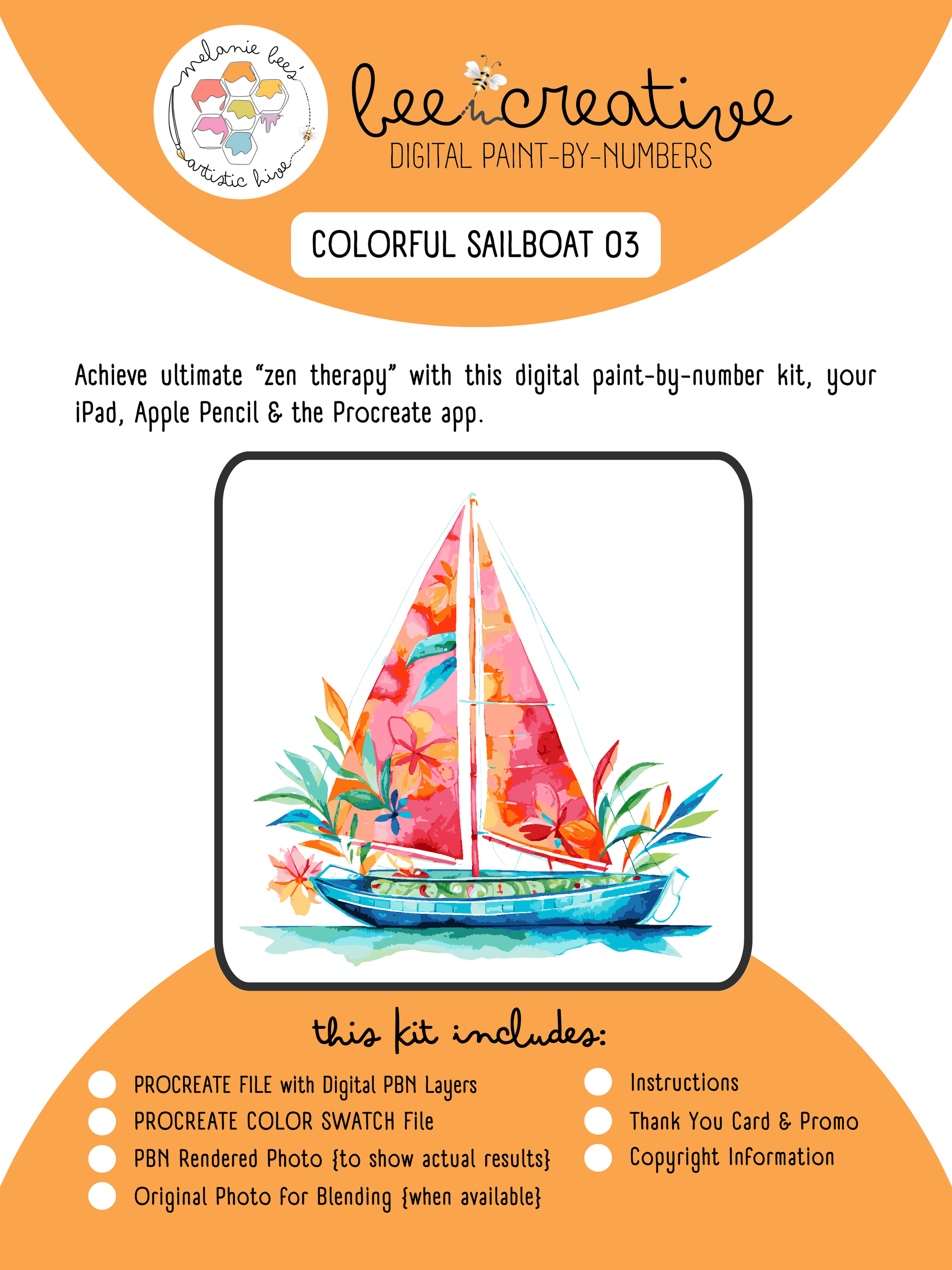 BEE CREATIVE Digital Paint by Number Kit {for Procreate} - COLORFUL SAILBOAT 03