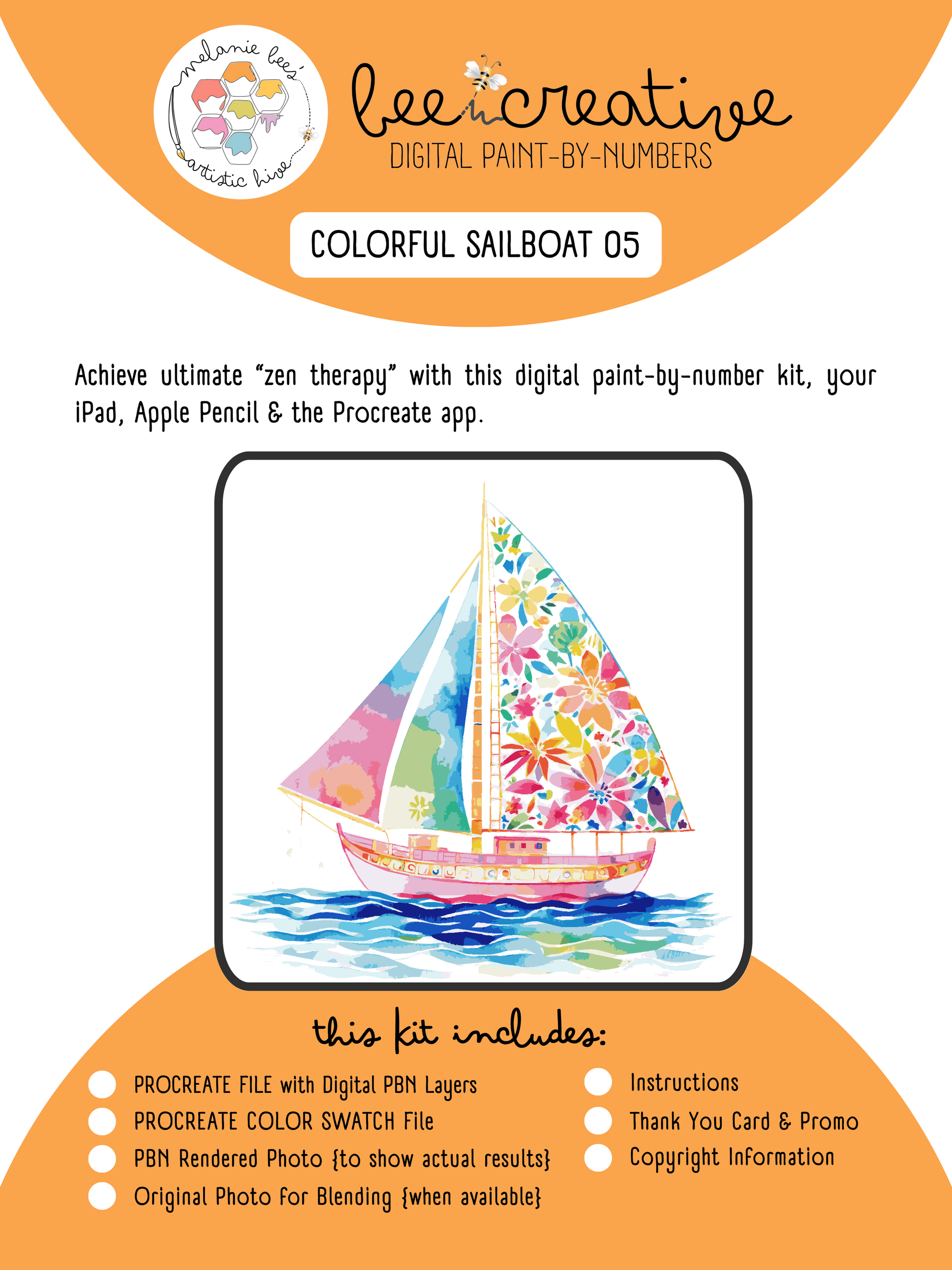 BEE CREATIVE Digital Paint by Number Kit {for Procreate} - COLORFUL SAILBOAT 05