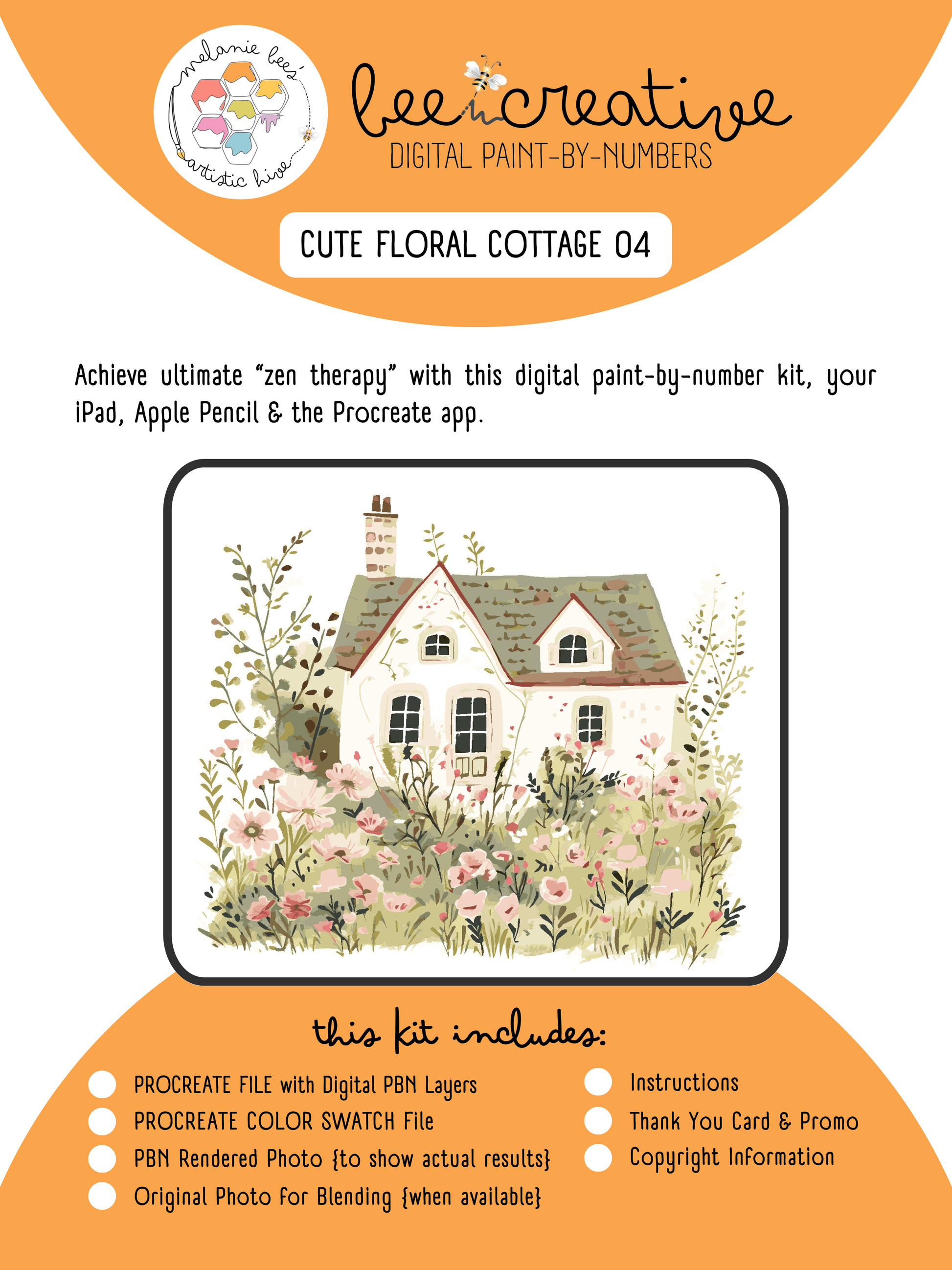 BEE CREATIVE Digital Paint by Number Kit {for Procreate} - CUTE FLORAL COTTAGE 04