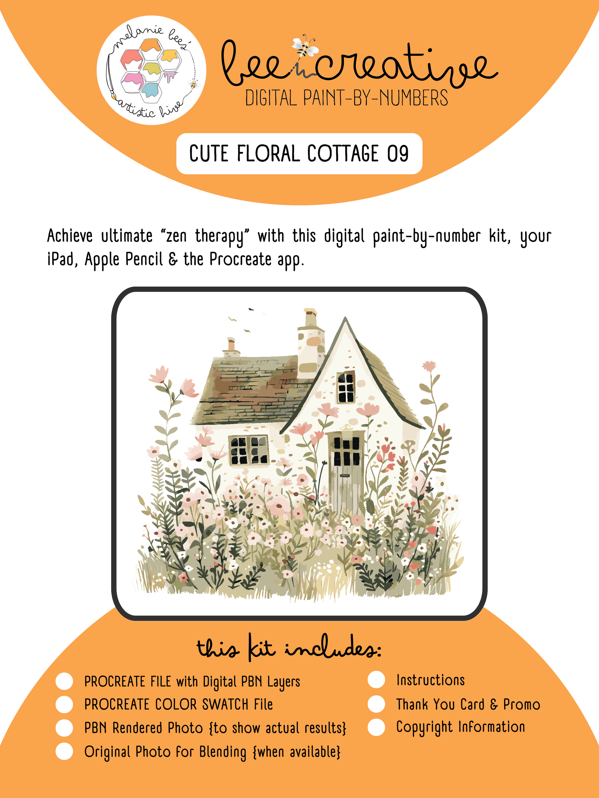 BEE CREATIVE Digital Paint by Number Kit {for Procreate} - CUTE FLORAL COTTAGE 09