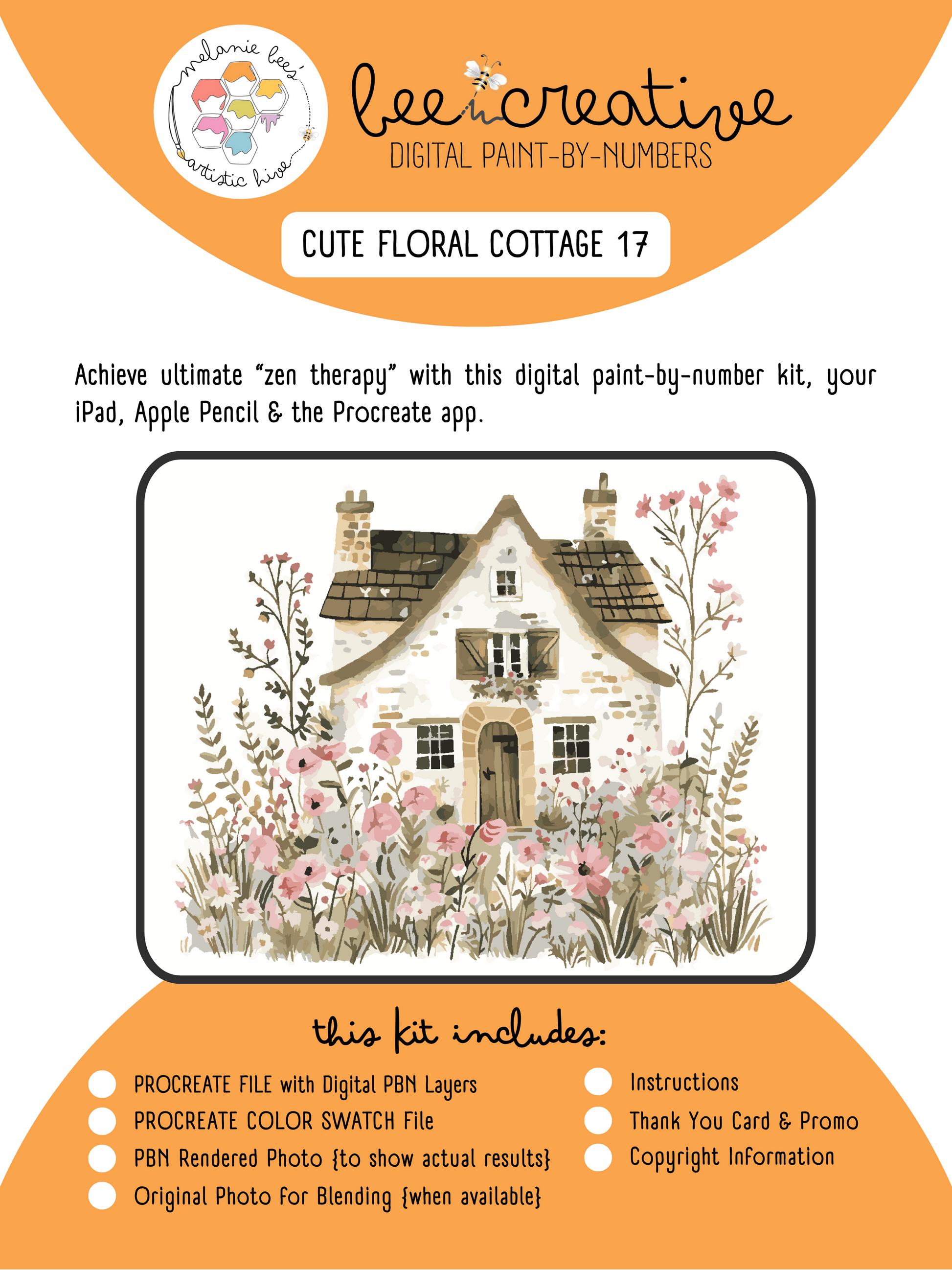 BEE CREATIVE Digital Paint by Number Kit {for Procreate} - CUTE FLORAL COTTAGE 17