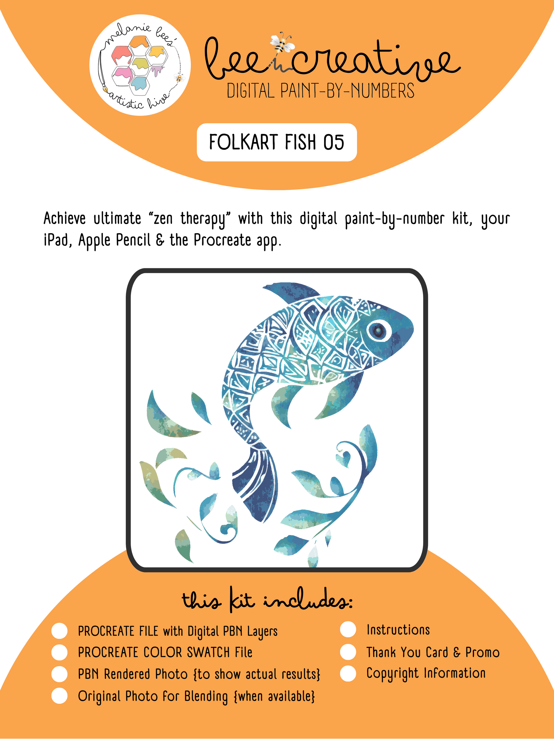 BEE CREATIVE Digital Paint by Number Kit {for Procreate} - FOLK ART FISH 05