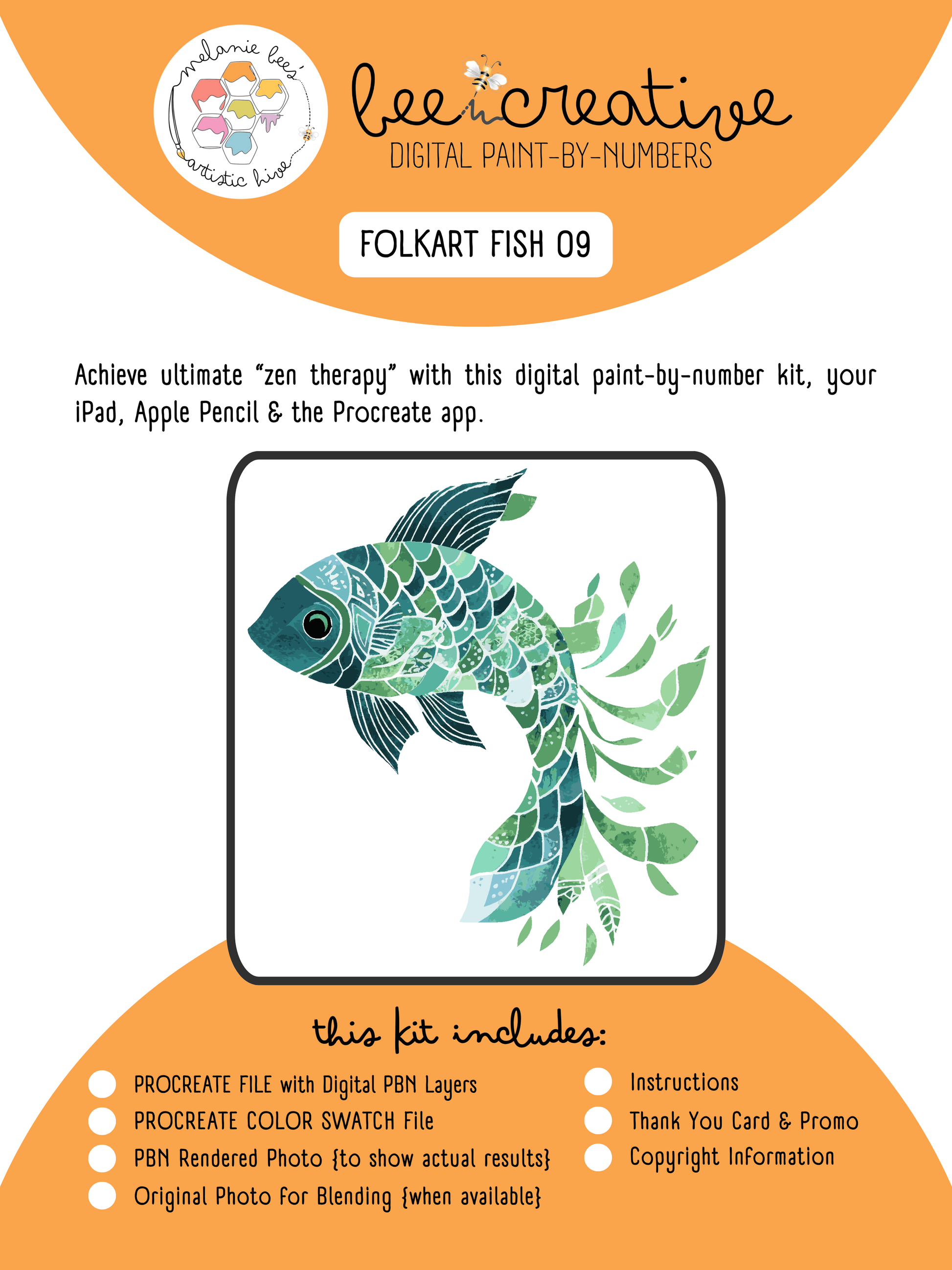 BEE CREATIVE Digital Paint by Number Kit {for Procreate} - FOLK ART FISH 09