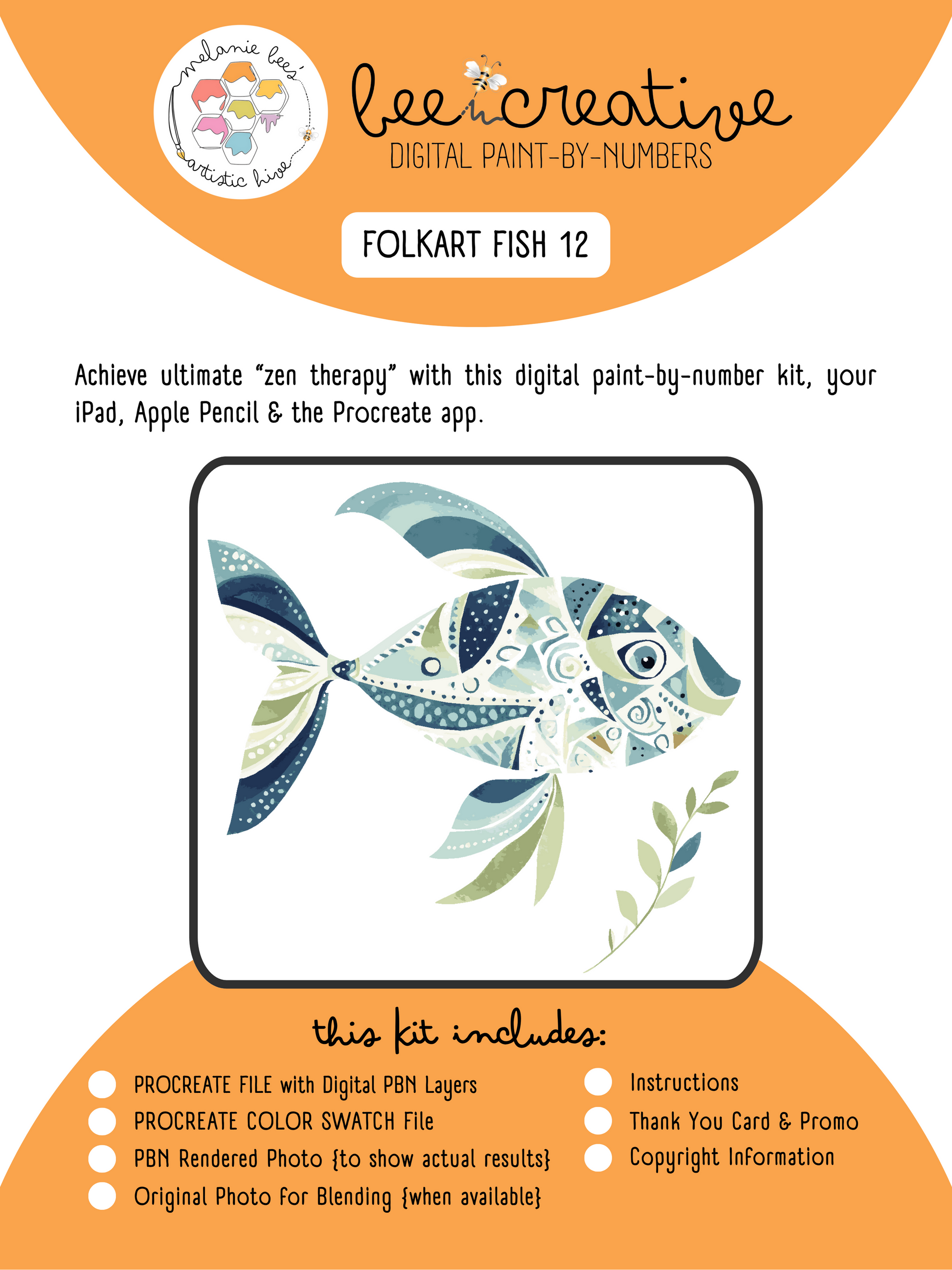 BEE CREATIVE Digital Paint by Number Kit {for Procreate} - FOLK ART FISH 12
