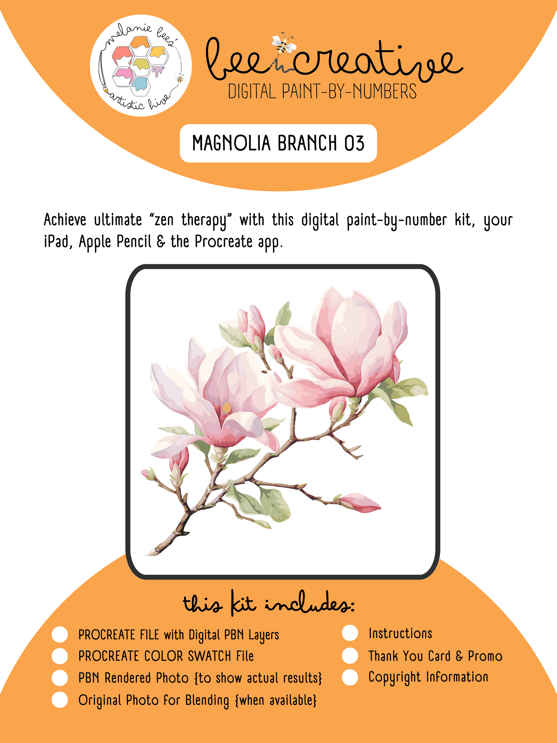 BEE CREATIVE Digital Paint by Number Kit {for Procreate} - MAGNOLIA BRANCH 03