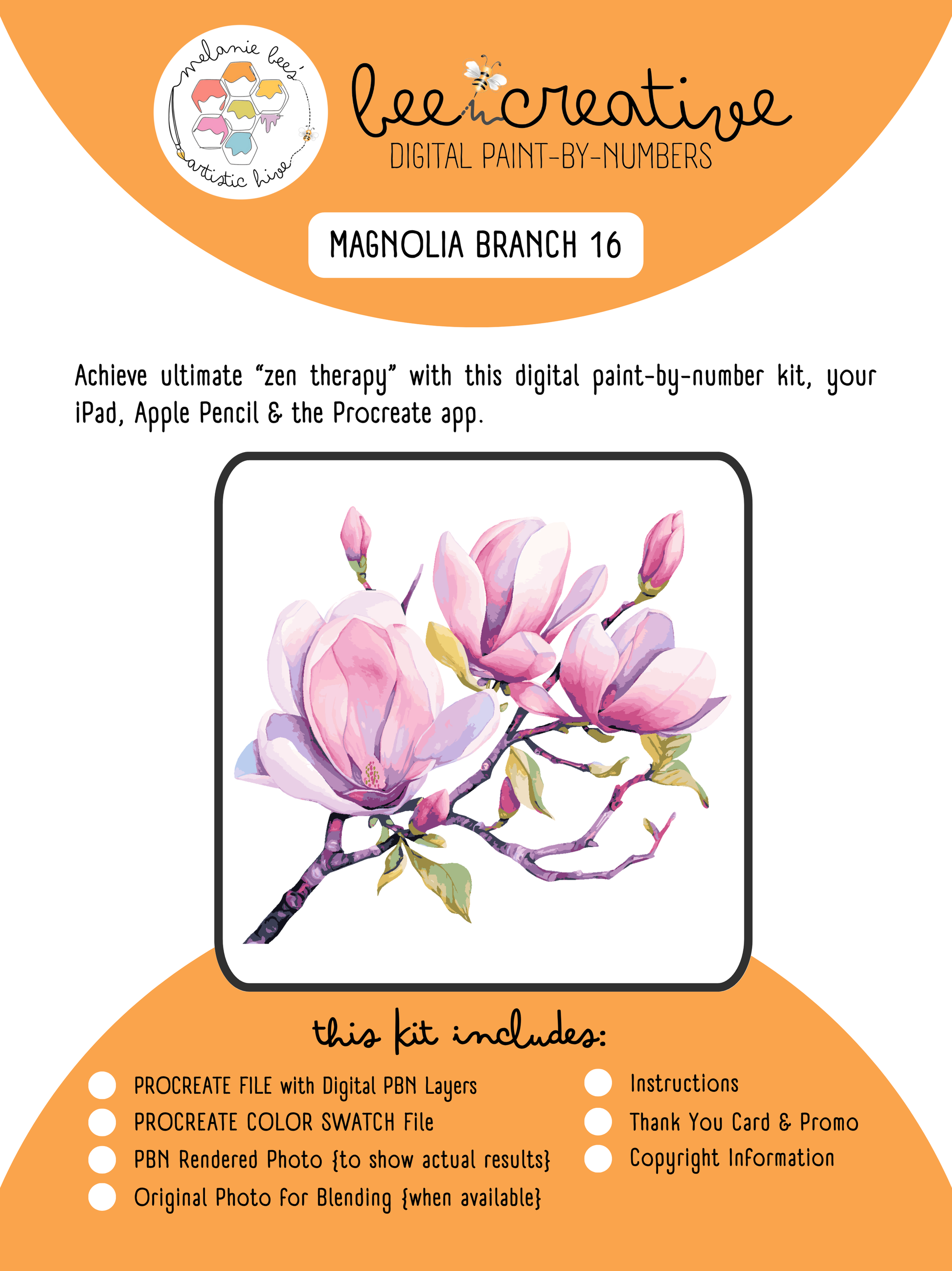 BEE CREATIVE Digital Paint by Number Kit {for Procreate} - MAGNOLIA BRANCH 16