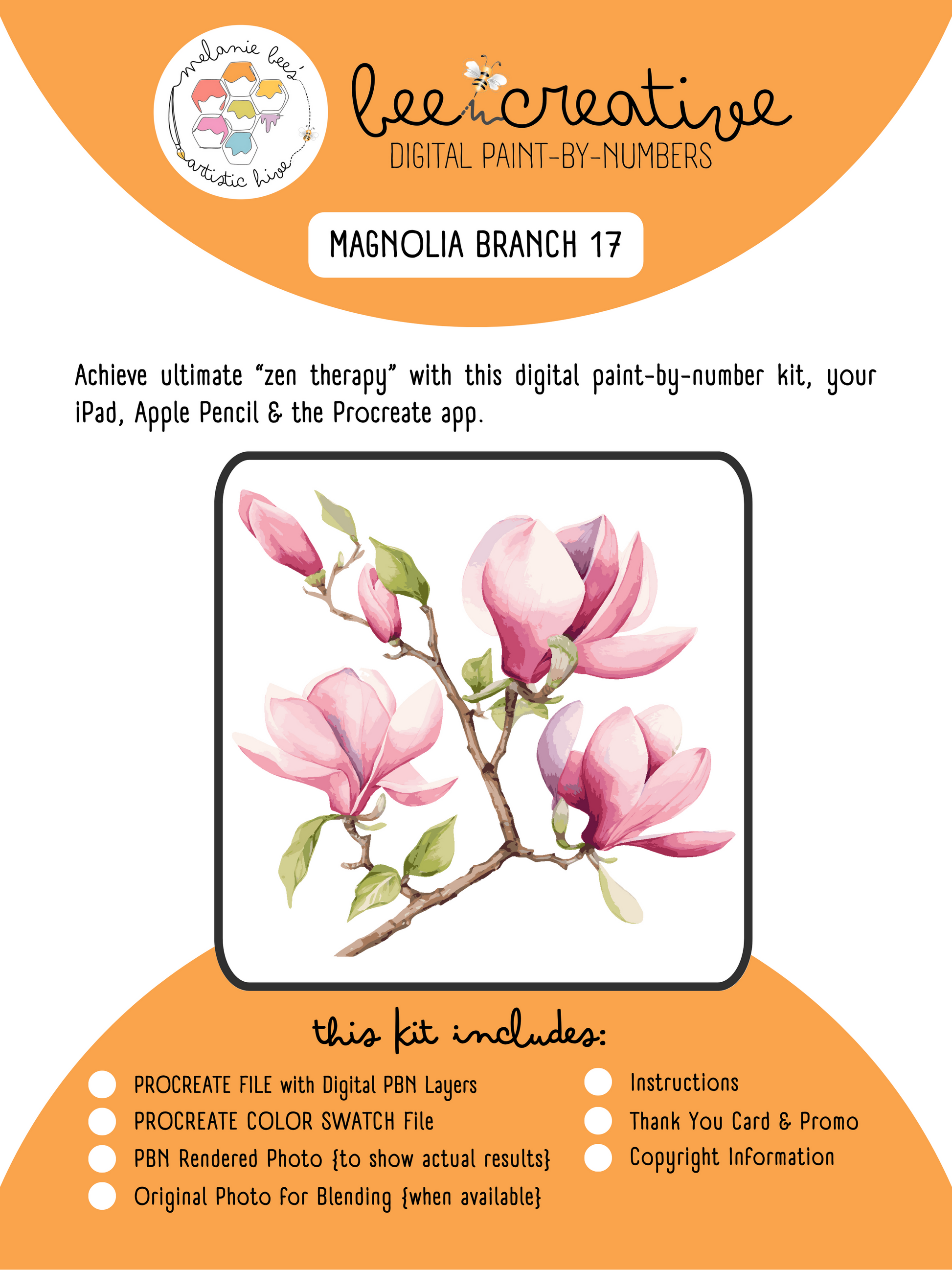BEE CREATIVE Digital Paint by Number Kit {for Procreate} - MAGNOLIA BRANCH 17