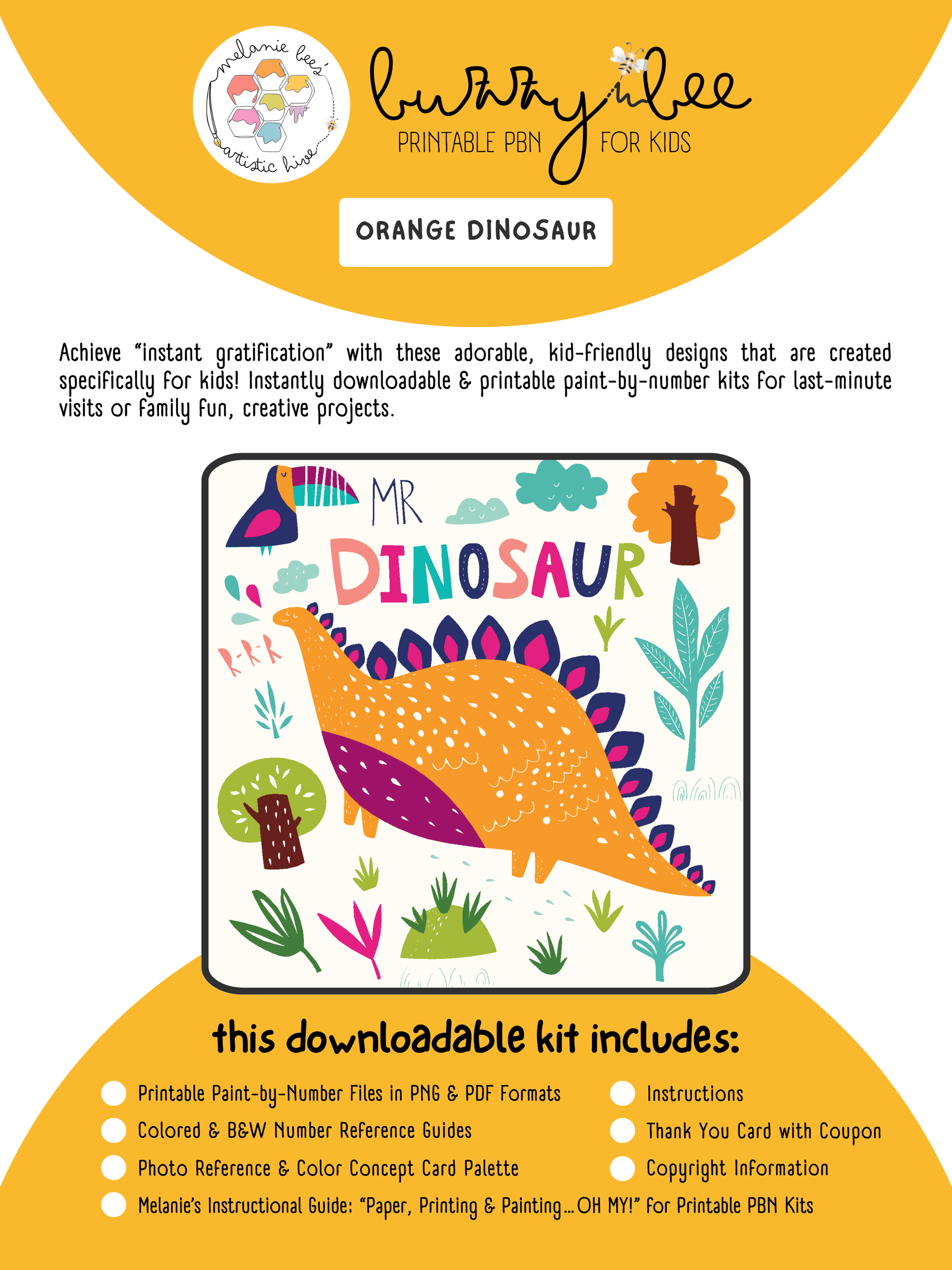BUZZY BEE KIDS Printable Paint by Number Kit - ORANGE DINOSAUR
