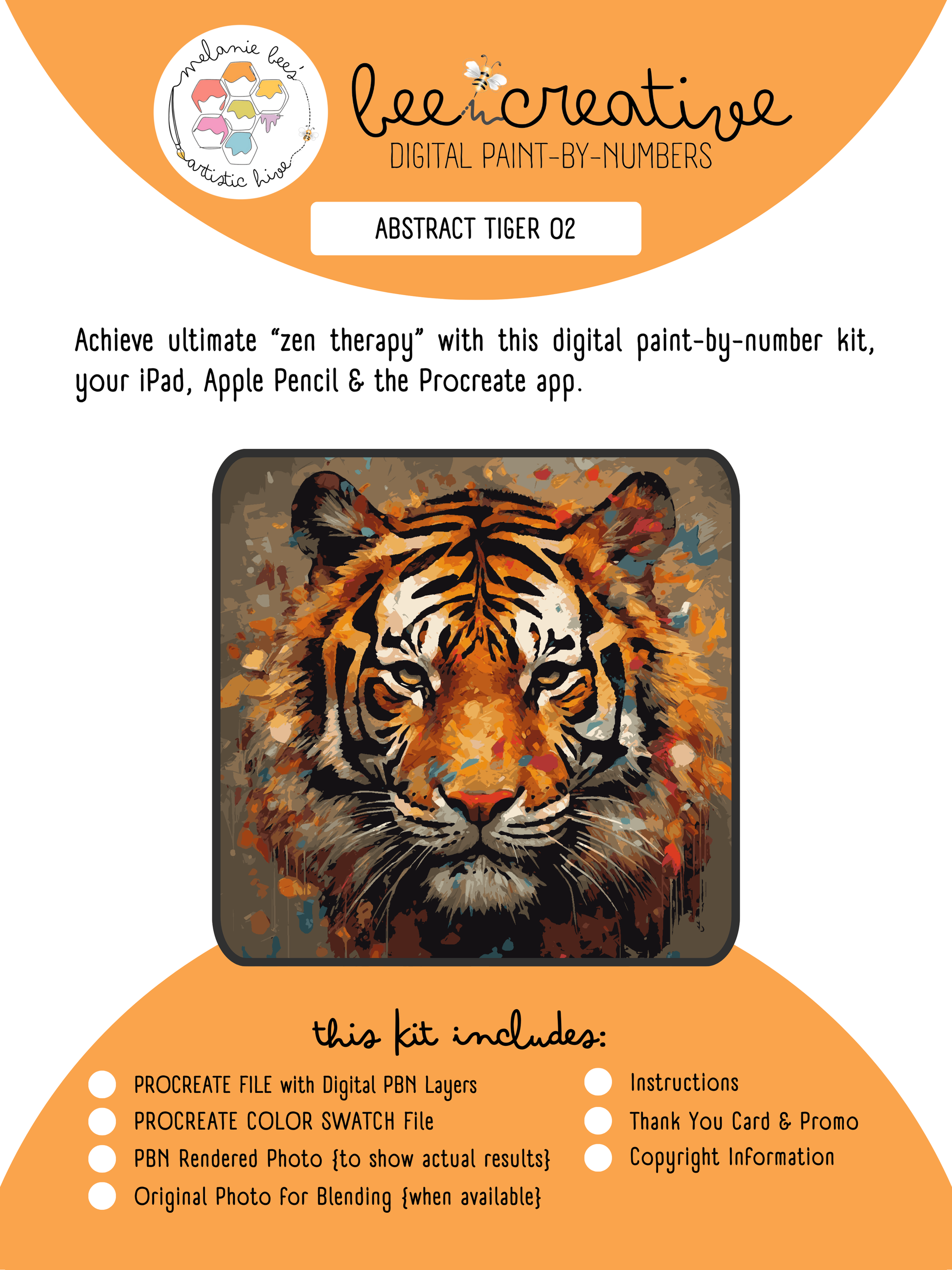 BEE CREATIVE Digital Paint by Number Kit {for Procreate} - ABSTRACT TIGER 02
