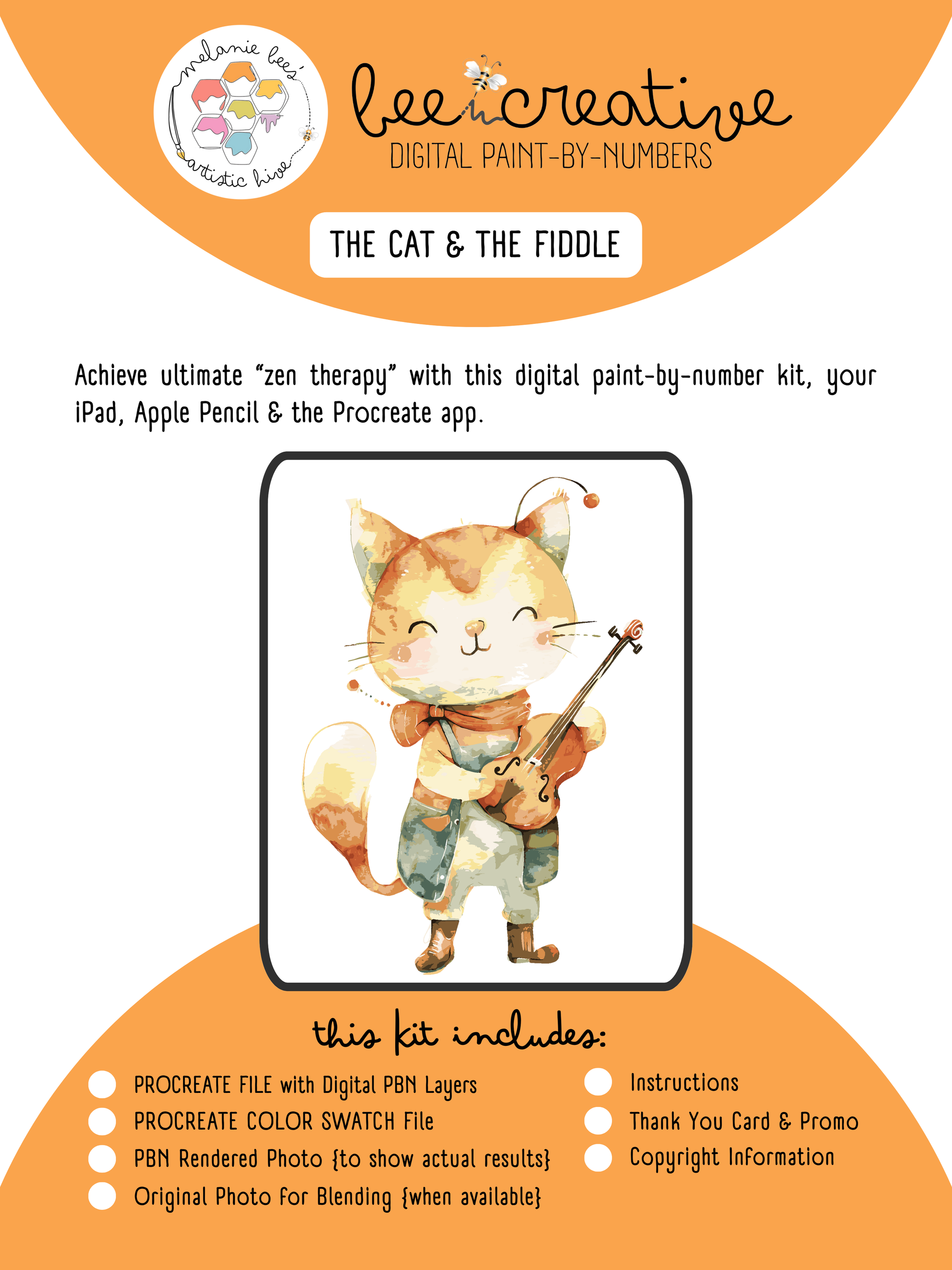 BEE CREATIVE Digital Paint by Number Kit {for Procreate} - THE CAT & THE FIDDLE
