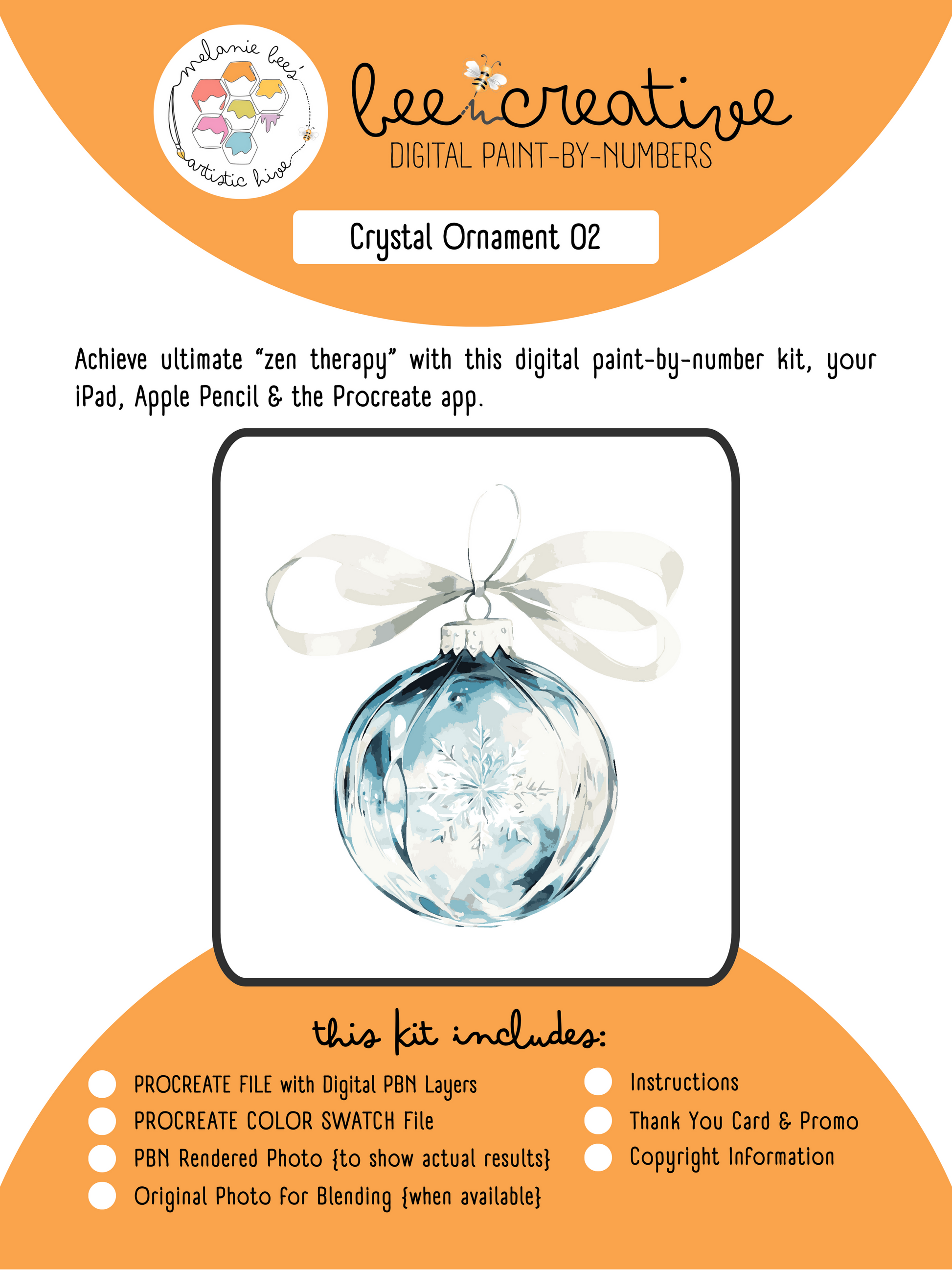 BEE CREATIVE Digital Paint by Number Kit {for Procreate} - CRYSTAL ORNAMENT 02